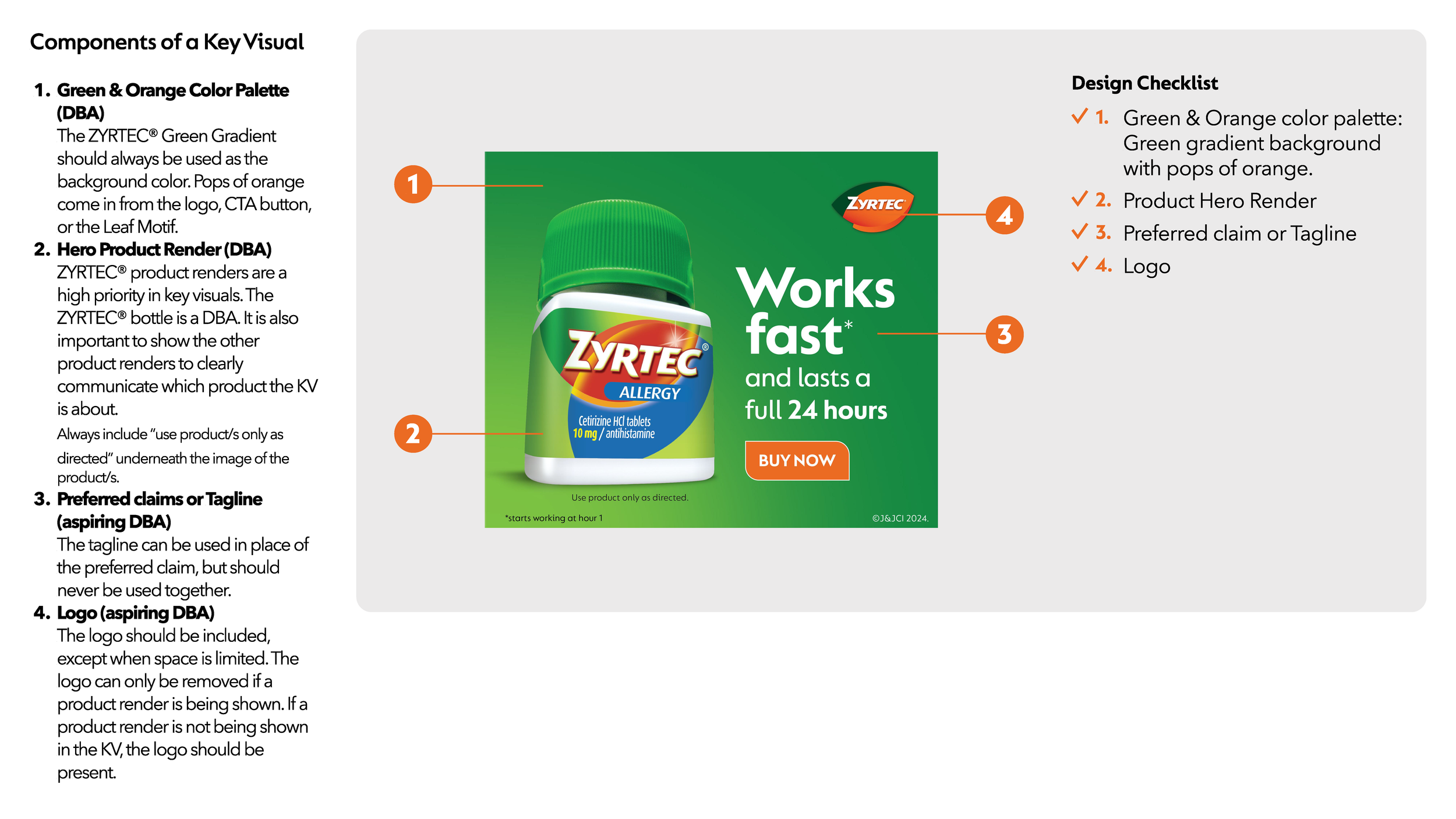 The Zyrtec brand was in need of a refresh to give the brand consistency across their portfolio. Not only to help consumers navigate at shelf, but also to update the packaging to be more sustainable. The packaging of the full portfolio given a refresh, and brand’s foundations were defined and brand guidelines were created to ensure consistent execution across all touch points.